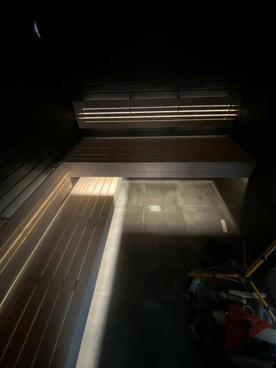 Баня в стиле Ч/Б 🤟🏻 Стены и потолок - вагонка липа, пропитана специальным составом с черным колером. Полки липа в естественном цвете. Ждем камень для облицовки печного угла😎