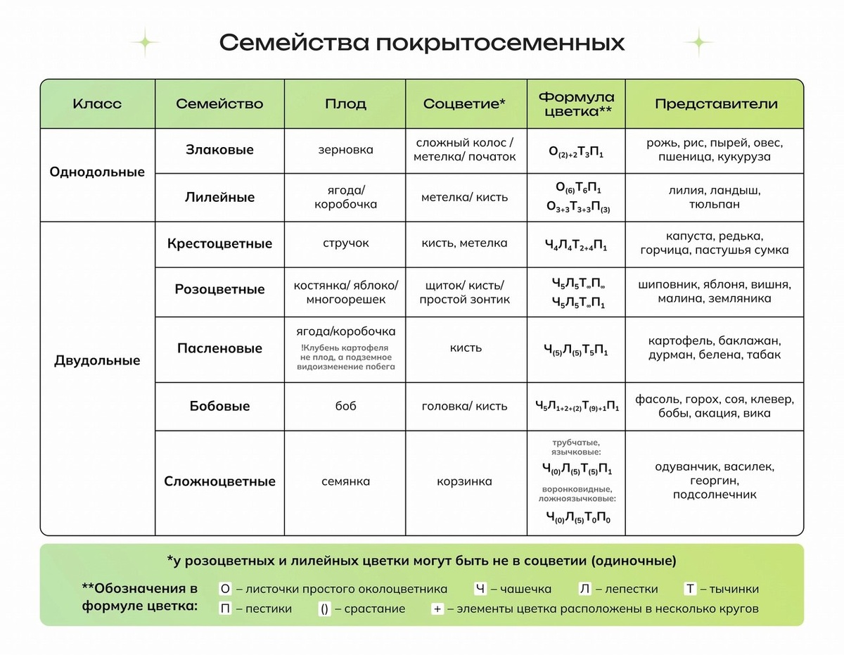 Шпора по семействам цветковых 🌹