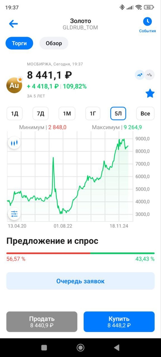 В ответ на пост 👑 Золото. Часть 6. 🔸 Золото снова впереди планеты всей. Спасибо Трампу за тарифы!🙂 А мы продолжаем разбираться с инструментами для инвестирования в золото. 🔸 И следующий инструмент - это биржевое золото GLDRUB_TOM (см. картинку👆). Что такое биржевое золото и с чем его едят? Если просто, то это золото, которое торгуется на бирже. Хранится оно в национальном расчетном депозитарии и сколько его реально там есть, никому не известно.) 🔸 Купить биржевое золото можно на брокерский счет или ИИС через приложение брокера. Сейчас 1 грамм стоит 8441 рубль, купить можно минимум 1 грамм. ➕Самый главный плюс биржевого золота заключается в том, что его можно купить по рыночной цене. Оно поэтому и называется биржевым - его цену определяет рынок, нет накруток посредников. Вы только платите комиссию брокеру за покупку или продажу (в ВТБ это 0,08%). ➕ Еще один несомненный плюс - это бесплатное хранение в НРД (национальном расчётном депозитарии). ➕НРД не может обанкротиться, это "