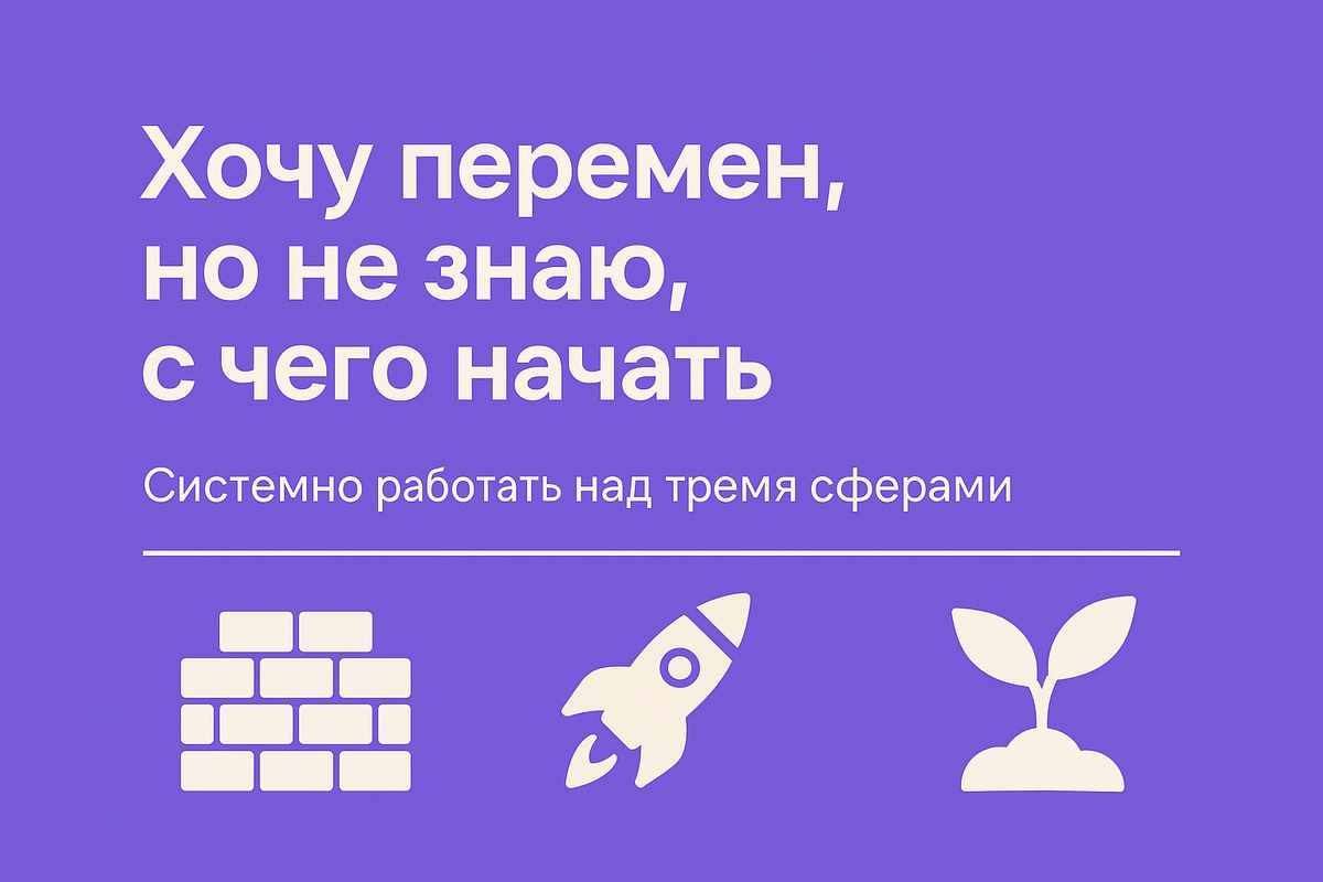 Иногда мы решаем: всё, с понедельника — новая жизнь. Буду есть брокколи, ходить в зал, гулять, медитировать и читать по утрам. Иногда даже выбираем красивую дату: Новый год, день рождения, первое число, пятница… Но проходит пара дней — и всё сдувается. А из раза в раз, не получая результата, становится только тяжелее. Хочется, но страшно. В голове шумит: - «Уже пробовал — не вышло» - «Слишком много всего, с чего начать?» - «А вдруг опять не получится?» Что с этим делать? Пробовать снова. Но не наобум — системно. Не по волшебному плану из подкаста. Не по чьему-то трекеру с разноцветными стикерами. А осознанно. Под себя. Выстраивая свою систему, которая работает не день, не два и даже не месяц. А всегда. Я уже рассказывала про три сферы жизни: 🧱 Фундамент — тело, энергия, базовое «мне ок». 🚀 Драйв — реализация, цели, движение вперёд. 🌿 Кайф — удовольствие от жизни, вкус момента, ощущение «я живу». Важно не выбирать одну, а удерживать баланс. Когда все три сферы в порядке — мы чувству