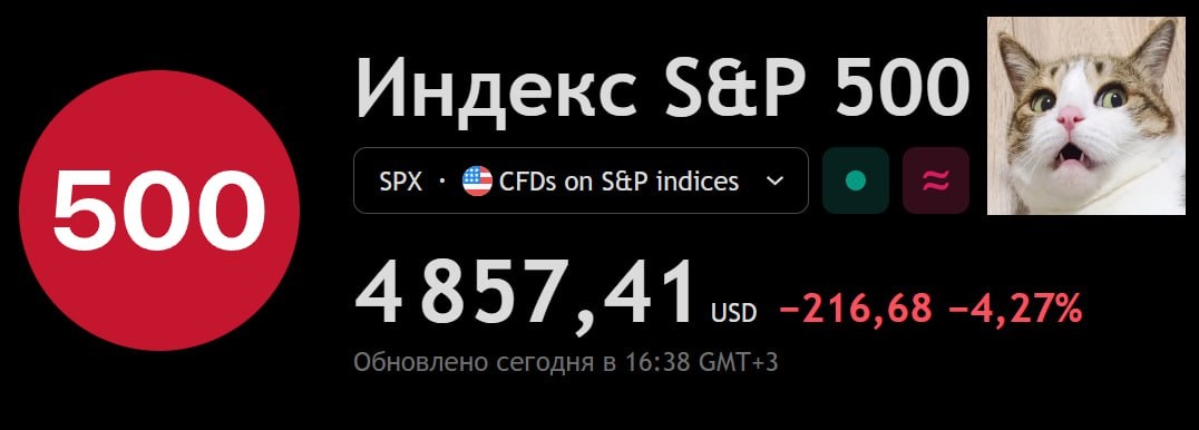 🇺🇸 На Уолл-стрит коллапс. За 5 дней индекс S&P500 потерял 13%