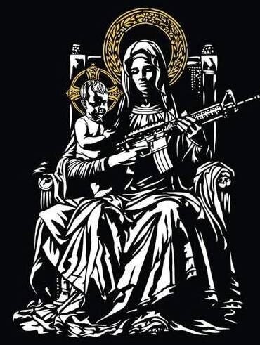 В соцсетях накануне Благовещенья распространяется изображение Богородицы работы известного ук-кого художника Андрея Ермоленко, на котором на руках Богородицы черного цвета, сидящей на троне, на коленях сидит младенец Христос и стре.ляет из авто.мата. Богородица помогает Младенцу держать авто.мат. По его мнению, младенец это ук-нец, а Богородица помогает ему держать ору.жие для противостояния со злом, каковым для него является РФ и всё что с ней связано. Когда, казалось бы, падать уже некуда, снизу снова постучали... В ук-ком творчестве популярно соединять религиозные темы с патриотами Родины, которые боролись с русскими. В церквях есть лики святых Ба.нд.еры, Шу.хе.вича и прочих гол.оворезов. Когда президентом был Поро.шенко, то ему подарили картину/икону, где его семья изображалась святыми. В одной из церквей это изображение нарисовали в его честь. А при Юще.нко в церкви рисовали святыми "элиту", которая "победила" на Ма.йда.не в 2004 году. Вот объясните мне пжл это как? Это почему?