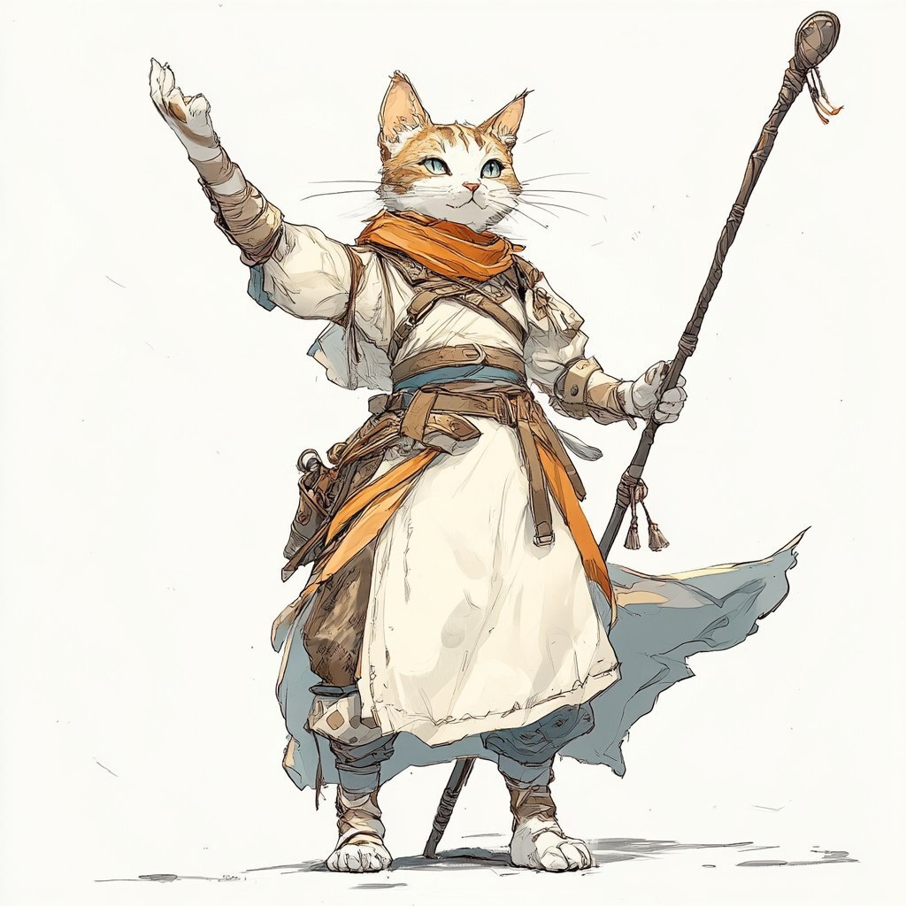 Создано на основе запроса: Fantasy concept illustration, Female Tabaxi Ragdoll cat , Brave, Witch, Arabian style dresses, Leather armour, Battle staff in hands, Octopath traveler style, White background, High quality, Exaggerated fighting pose --- Автоперевод: Фэнтезийная концепция иллюстрация, женская табакси рагролл кошка, храбрый, ведьма, платья в арабском стиле, кожаная броня, боевой персонал в руках, стиль осьминога, белый фон, высокое качество, преувеличенная боевая поза Как тебе этот вариант? 🤔 https://dzen.ru/id/65c0c65c86e4f837c27b24d7 #ИИ #AI #нейросеть #midjourney #art