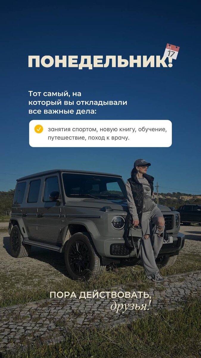 Хватит ждать понедельника! Сказали себе: «Начну с понедельника!» — и… снова отложили. Знакомо? Фитнес, питание, книги, медитации, встреча с родителями — всё «на потом»… А в понедельник? 🤯 Гора незавершёнок, усталость, стресс — ничего не начато. Почему так? ❌ Прокрастинация ❌ Завышенные ожидания ❌ Стресс ❌ Отсутствие плана ❌ Сложность задач ❌ Низкая мотивация И знаете, что хуже всего? Каждое откладывание — это упущенный шанс! ⏳ Упущенные минуты. ⏳ Упущенные цели. ⏳ Упущенные возможности. Выход? Техника «5 секунд» от Мэл Роббинс! Да, работает мощно! Вот как: 1. Почувствовали импульс — считайте: 5-4-3-2-1 2. На «1» — ДЕЙСТВУЙТЕ! Без оправданий. Без промедлений. Без «а вдруг». Почему это работает? ⚡ Отключает внутреннего критика ⚡ Не даёт страхам взять верх ⚡ Прививает привычку ДЕЙСТВОВАТЬ Так что… НЕ жди понедельника! Начни СЕЙЧАС! Что ты откладывал(а)? Пиши в комменты — давай вытащим эти дела из папки «потом»! 👇