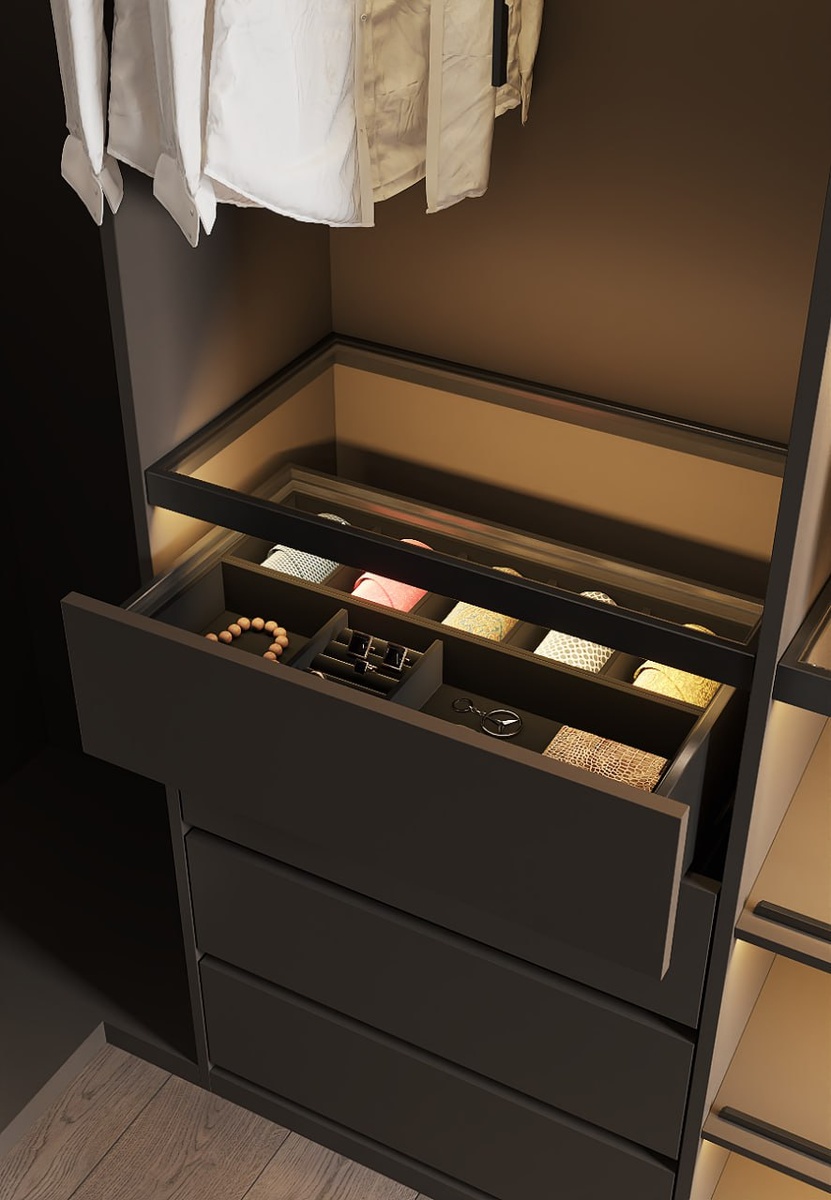 Целая комната, отведенная для гардеробной — мечта любой девушки. Так что забудьте про советские огромные шкафы! Сейчас гардероб — не просто место для хранения вещей, а целое искусство. Поэтому ловите рецепт, как создать создать своё «модное царство»: Планирование Перед тем, как мчаться по магазинам в поисках вешалок — определите, сколько места у вас есть. Замерьте, сколько пространства вам нужно для обуви, одежды и аксессуаров. Зонирование Когда вы поняли, что и сколько потребует места — распределите комнату на зоны. Только смотрите, чтобы вы смогли спокойно между ними перемещаться. Освещение Хороший свет — залог успеха и красивого внешнего вида. Установите яркие светильники около шкафов и зеркал. Можете сделать подсветку для ваших украшений, чтобы они сияли еще больше. Хранение Стеллажи и ящики — как же без них? Заранее продумайте, что и где будет хранится. Чем тщательнее вы это продумаете, тем меньше шансов, что ваша одежда не поместиться. Личный стиль Гардеробная — э