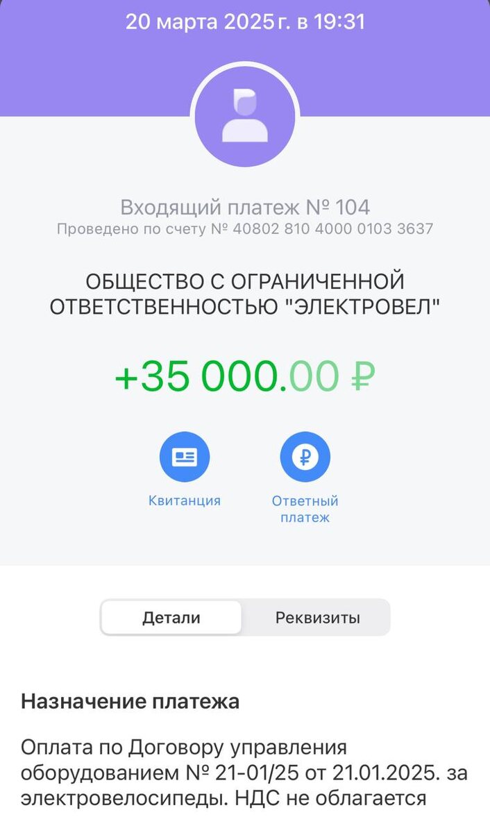 Буквально недавно я купил 5 электровелосипедов, чтобы сдавать их в аренду через Управляющую компанию Ранее я уже получал Первую выплату, которая составила 17.500 руб, или 3500 на велосипед. Выплата была частичной, поскольку остальная ее часть ушла на оснащение велосипедов. В текущий момент рынок электротранспорта активно растет, в связи с чем параллельно переживает процесс «наведения порядка государством». В ближайшее время курьеров обяжут вставать в специальный реестр, носить шлемы и иметь соответствующую категорию прав, а велосипеды будут ставится на учет в ГИБДД. Такие тенденции скорее всего приведут к временным сложностям в рынке доставки еды, уходу небольших игроков, которые сдают велосипеды в аренду и монополизации рынка у более крупных ренталов. Что будет дальше - любопытно наблюдать. А пока что моя текущая выплата в этом месяце составила 35 тыс рублей, положенная по договору, что при вложении 450 тыс составило 93% годовых 🔥 Чтобы более глубоко разобраться в стратегии понять