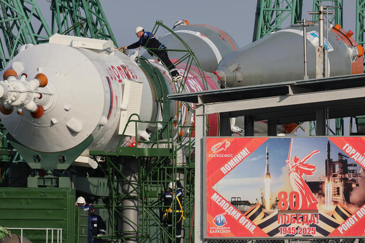 На космодроме Байконур готовятся к знаменательному событию. 8 апреля утром ракета «Союз МС-27» возьмет курс на МКС. Этот запуск приурочен к 80-й годовщине Победы в Великой Отечественной войне, что привлекло беспрецедентное количество туристов, желающих наблюдать за стартом вживую. Пуск посвящен юбилею Победы, и ракета украшена масштабным изображением монумента "Родина-Мать Зовет!". Состав с ракетой и кораблем "Союз МС-27" доставили к стартовой площадке по железной дороге. Процесс вертикализации и установки занял несколько часов. Как сообщает корреспондент телеканала "Рен-ТВ", за выкатом ракеты наблюдает дублирующий экипаж, основной экипаж изолирован и не видит ракету до момента старта – такова традиция. Командир корабля Сергей Рыжиков готовится к своему третьему полету, а для бортинженера Алексея Зубрицкого и астронавта NASA Джонатана Кима это дебютный старт. У космонавтов существует множество традиций перед запуском, включая посадку деревьев, просмотр фильма "Белое солнце пустыни", по