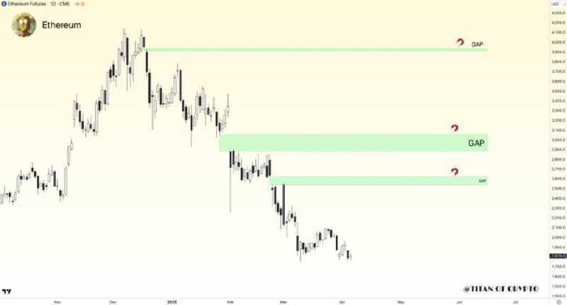 Ethereum оставил после себя дыры. В прямом смысле. На графике фьючерсов CME по ETH — сразу три незакрытых GAP’а выше текущей цены. И, как показывает история: рынки не любят пустоты. Они их заполняют. Вот где эти гэпы находятся: ▫️ $2,550 – $2,625 ▫️ $2,890 – $3,050 ▫️ $3,917 – $3,933 (частично закрыт) Фьючерсные гэпы — это области, где торги на CME не велись, но цена между сессиями сместилась. Часто это сигнал: – Либо о сильной эмоции на рынке (страх/эйфория) – Либо о техническом дисбалансе, который рынок со временем возвращается «подчистить» Нет гарантии, что гэпы закроются быстро. Но их наличие — это потенциальные цели для цены в будущем. Особенно если: – Страх утихнет – Акции начнут отскакивать – И капитал пойдёт в ETH после ослабления ставок Вопрос к вам: Как думаете — увидим ли мы $2,800–3,000 снова в этом цикле? Или эти гэпы останутся сиротами на графике? #eth