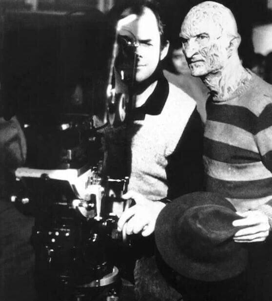 Роберт Энглунд проверяет отснятый дубль за кулисами фильма «Кошмар на улице Вязов» (1984)