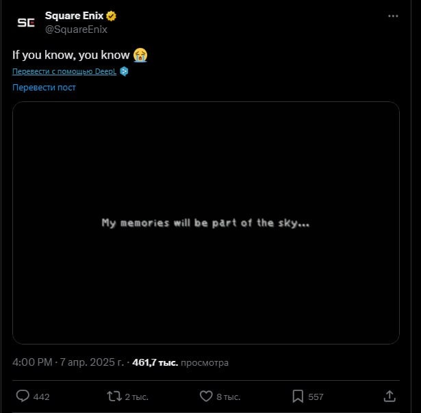 «Если вы знаете, вы знаете»: Square Enix начала тизерить что-то по Final Fantasy 9 — по утечкам, ремейк игры должен выйти до конца следующего года.