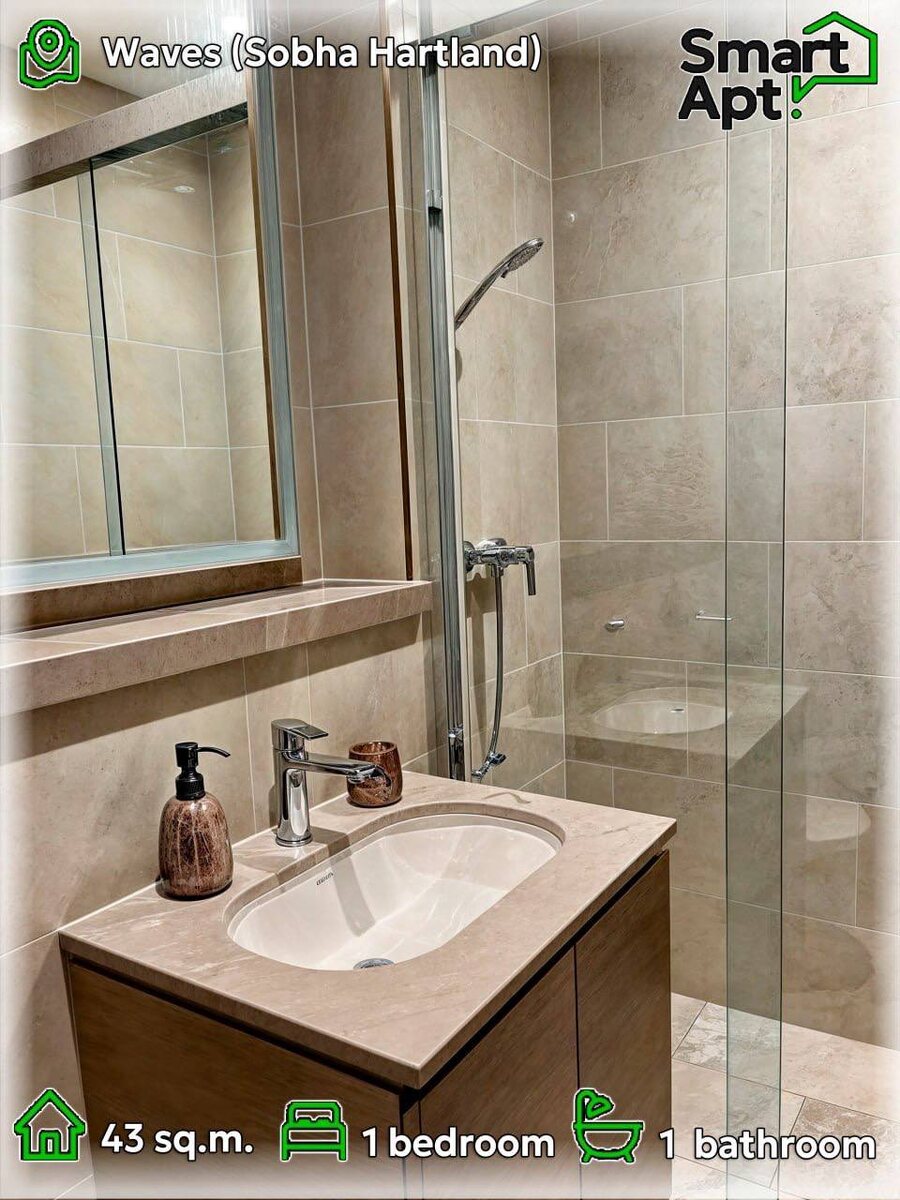 1 bdr 43 sq m 1 bathroom Waves Sobha Hartland Уютная квартира с отдельной спальней и видом на тихий, зеленый двор. Стоимость 9900 aed. БЕЗ КОМИССИИ. При заключении договора аренды на 5 месяцев стоимость в месяц 8900 aed. ✅ ЧТО В КВАРТИРЕ В квартире есть все для комфортного проживания и отдыха. В спальне кровать с дополнительным местом для хранения, встроенный шкаф. В ванной душевая кабина. На кухне встроенная техника, тостер, чайник, все необходимые кухонные приборы и посуда. В гостиной обеденная зона и зона для отдыха с раскладным диваном и телевизором. Бесплатный Wi-Fi. ✅ ЧТО В ДОМЕ К услугам гостей открытый бассейн и фитнес-центр,паркинг в здании. ✅ ЧТО РЯДОМ Sobha Hartland новый, но уже хорошо развитой район. В пешей доступности есть магазины, кафе и сфера услуг. Также есть школа - Hartland International School Dubai. 7 мин. до Meydan One Mall 12 мин. до Downtown Dubai 17 мин. до Jumeirah Beach 20 мин. до Dubai Int. Airport ✅ ЧТО ВКЛЮЧЕНО В СТОИМОСТЬ Все коммунальные платежи
