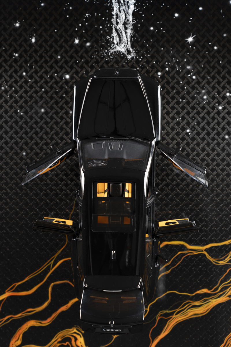 Когда автомобиль становится символом стиля, мощи и статуса, хочется увековечить его не только на дороге, но и в искусстве. Именно так родилась идея создания этой уникальной картины на заказ — работы, в которой переплелись динамика, роскошь и вечное стремление к совершенству. В центре композиции — модель Rolls-Royce Cullinan, мастерски вписанная в пространственный фон из карбона. Чёрный, благородный блеск кузова перекликается с глубоким карбоновым узором, создавая ощущение скорости и уверенного движения даже в статичности. Фон картины — это не просто текстура. Здесь запечатлено целое пространство: в верхней части — олицетворение легендарной «Души экстаза», выполненной в виде сияющей фигуры, будто взлетающей в ночное небо, а внизу — яркие потоки энергии, напоминающие следы горящего света на асфальте. Они словно подчеркивают силу и мощь, заложенные в каждом движении Rolls-Royce. Картина создана на высокотехнологичной основе: использованы карбоновые волокна с плетением Rolls-Royce, ручная