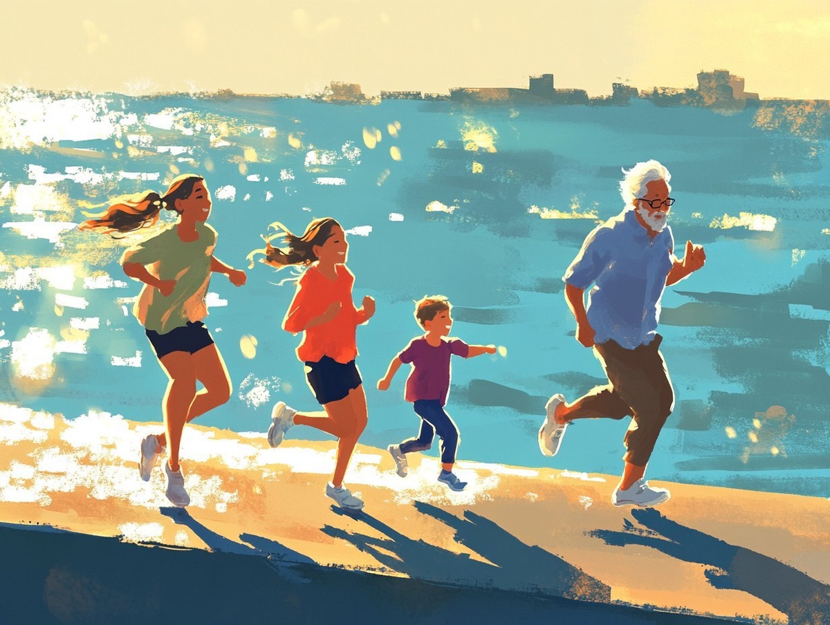 Создано на основе запроса: A young man and woman are on the left side of the picture, and a grandfather with his grandson is on the right. They are running on a long embankment, and the sunlight is strong enough to cast shadows on their faces. In the background is the glittering ocean. --- Автоперевод: Молодой мужчина и женщина находятся на левой стороне картины, а дедушка со своим внуком справа. Отлично получилось? 🤔 https://dzen.ru/id/65c0c65c86e4f837c27b24d7 #ИИ #AI #нейросеть #midjourney #art