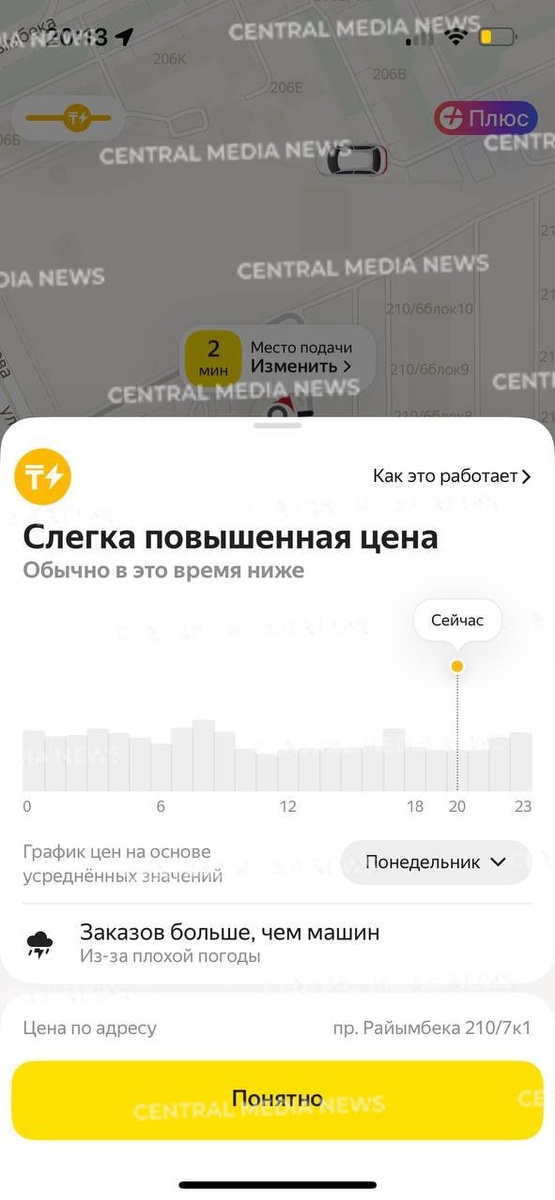 Непогода бушует в Алматы В Алматы вечером 7 апреля разбушевалась непогода. Весенние дождь с порывистым ветром перешел в град. Также горожане сообщают о громе и молниях. Многие люди, возвращающиеся с работы, спрятались пережидая бурю в переходах метро. Тем, кому не удалось укрыться от непогоды, пришлось столкнуться с повышенным тарифом такси. Подписчик в телеграм боте поделился, что отрезок, за проезд по которому ездит обычно за 600 тенге, сегодня приложение выставило цену в три раза больше. Видео, фото: CMN.KZ. ✍️Подписывайтесь на t.me/CentralMediaNews