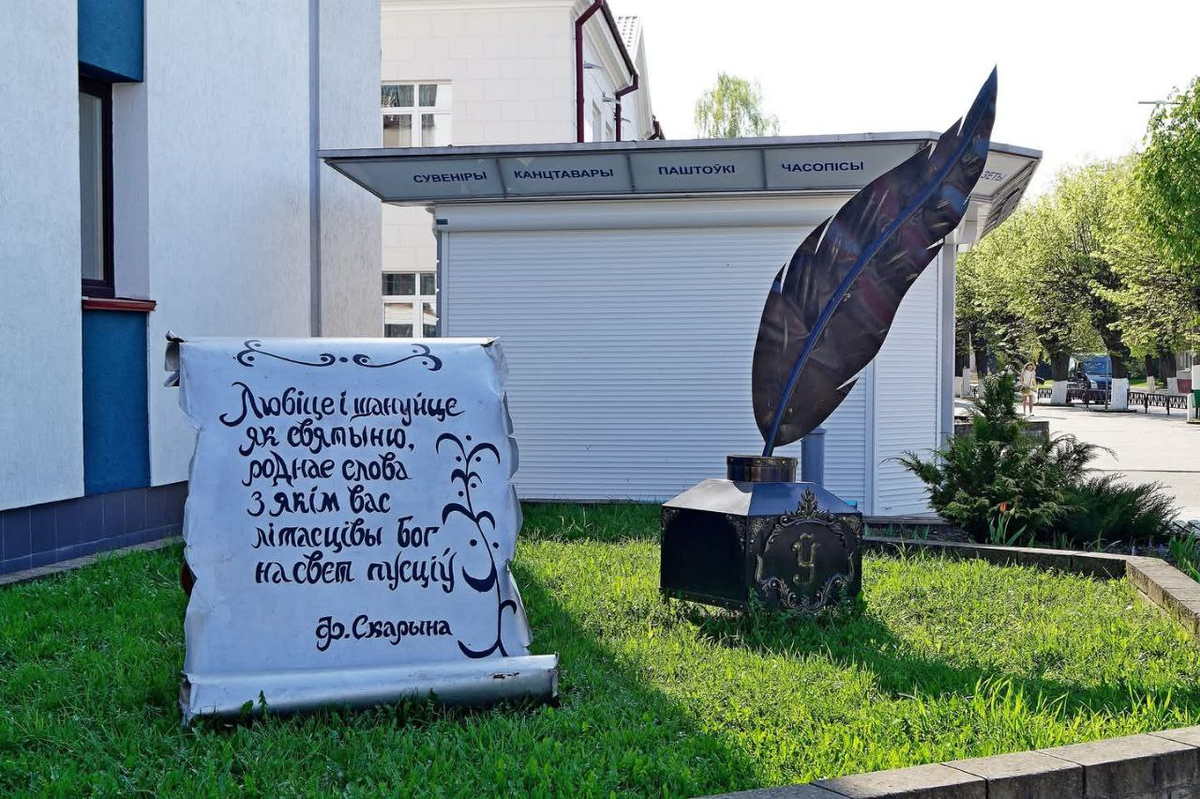 На просторах сети наткнулся вот на такое фото из города Щучина в Гродненской области: Сперва меня позабавило изображение литеры Ў на чернильнице. Франциск Скорина такой буквы не знал и, естественно, не использовал, поскольку придумают ее только на рубеже 19-20 вв. Затем у меня возникли подозрения по поводу цитаты, не мистификация ли это. Гуглится только вариант на современном белорусском языке без отсылки на первоисточник - просто Фр. Скорина и все. Есть другая известная "патриотическая" цитата Скорины, она легко находится на языке оригинала: "Понеже от прирожения звери, ходящие в пустыни, знають ямы своя; птицы, летающие по возъдуху, ведають гнезда своя; рыбы, плывающие по морю и в реках, чують виры своя; пчелы и тым подобная боронять ульев своих, - тако же и люди, игде зродилися и ускормлены суть по Бозе, к тому месту великую ласку имають". Источник тоже хорошо известен - предисловие к книге Юдифь. Далее, Скорина не писал на "народном" языке. Да, он пытался адаптировать библейские т