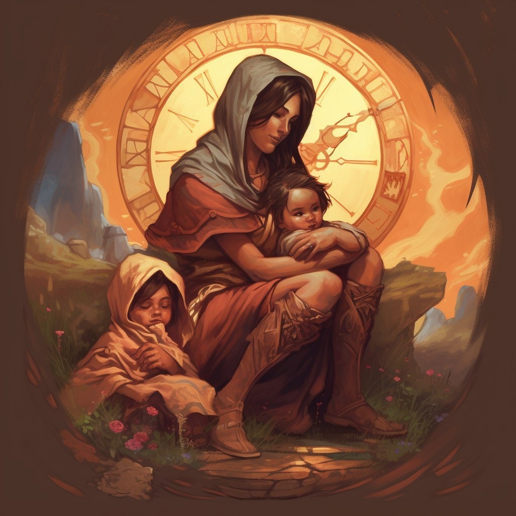 Создано на основе запроса: mother time, magic the gathering art style, high definition