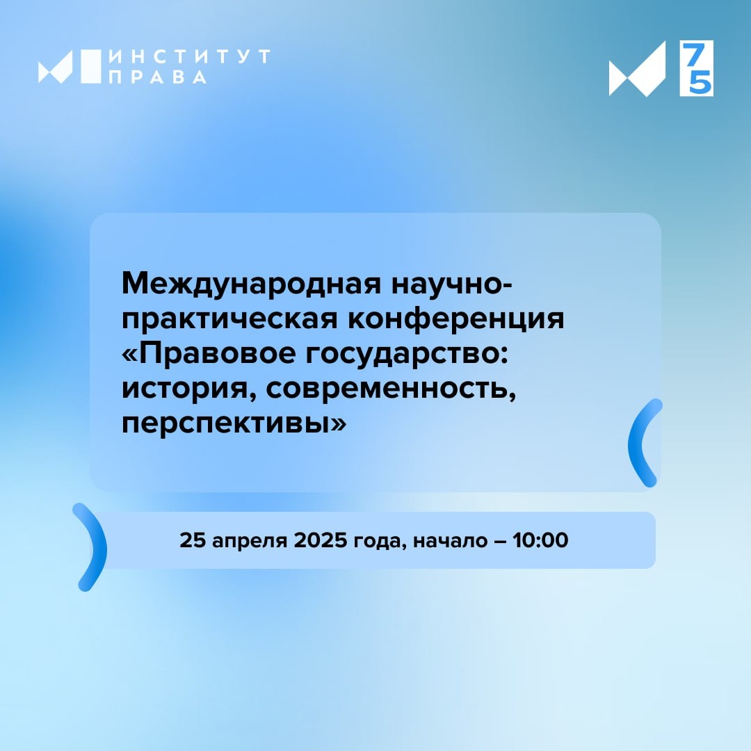 Институт права УУНиТ приглашает Вас принять участие в конференции «Правовое государство: история, современность, перспективы». Мероприятие посвящено памяти выдающегося ученого, доктора юридических наук, профессора Ф.М. Раянова. Дата: 25 апреля 2025 года, 10:00 Регистрация до 20 апреля: https://forms.yandex.ru/u/67c6a4fc4936398a414db95d/ Отправка статей до 20 мая: kamal.law@yandex.ru Подробности по ссылке🔗