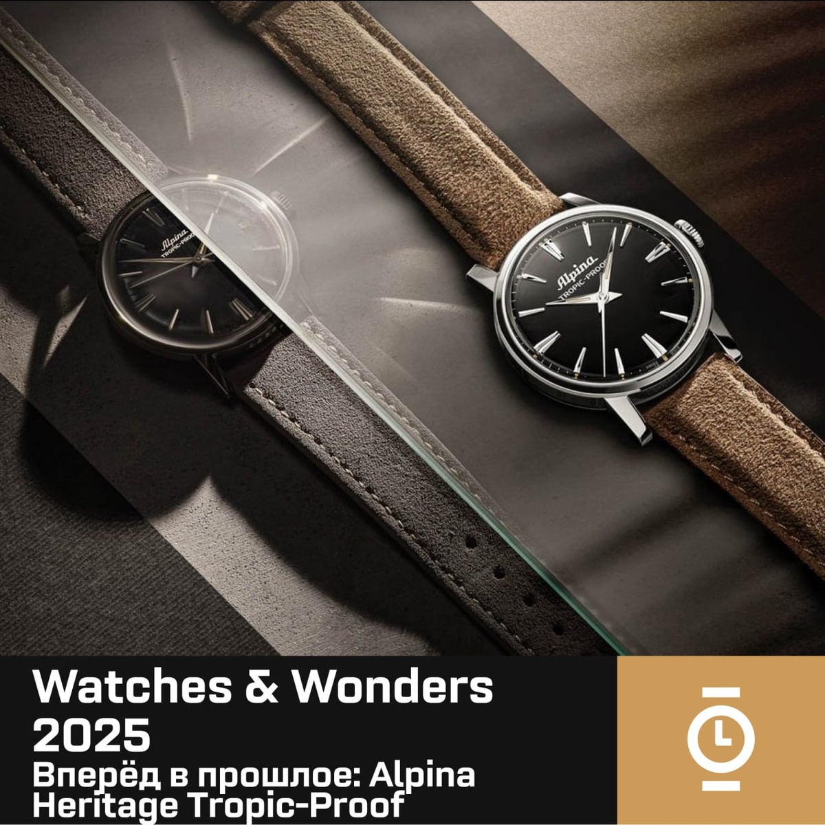 Вперёд в прошлое: Alpina Heritage Tropic-Proof #WW_WD Помните 34-мм премьеру Lange? У Alpina своя, того же размера. Это переиздание модели 1960-х. Дизайн новых часов вдохновлён ею, а диаметр и вовсе совпадает. Сейчас часы с хорошей водозащитой уже привычны. Мы хвалим вечники и полные календари со 100-метровой водозащитой, но не считаем это чем-то запредельным. А в 1960-х водозащищённые часы только-только стали трендом. Большим успехом пользовался François Borgel — производитель водонепроницаемых корпусов с характерной десятиугольной задней крышкой. Такие корпуса использовали Patek Philippe, Doxa, Mido… и Alpina — в модели Tropic-Proof. Эти были довольно простые стальные часы диаметром 34 мм с чёрным или белым циферблатом. И новой моделью Alpina возвращает нас в те времена. Фишка Alpina в том, что она не стала добавлять в часы никаких фишек. Корпус — винтажного 34-мм размера при толщине 9,25 мм, циферблат — как у оригинала, даже стекло купольное (только сапфировое, а не акриловое, к