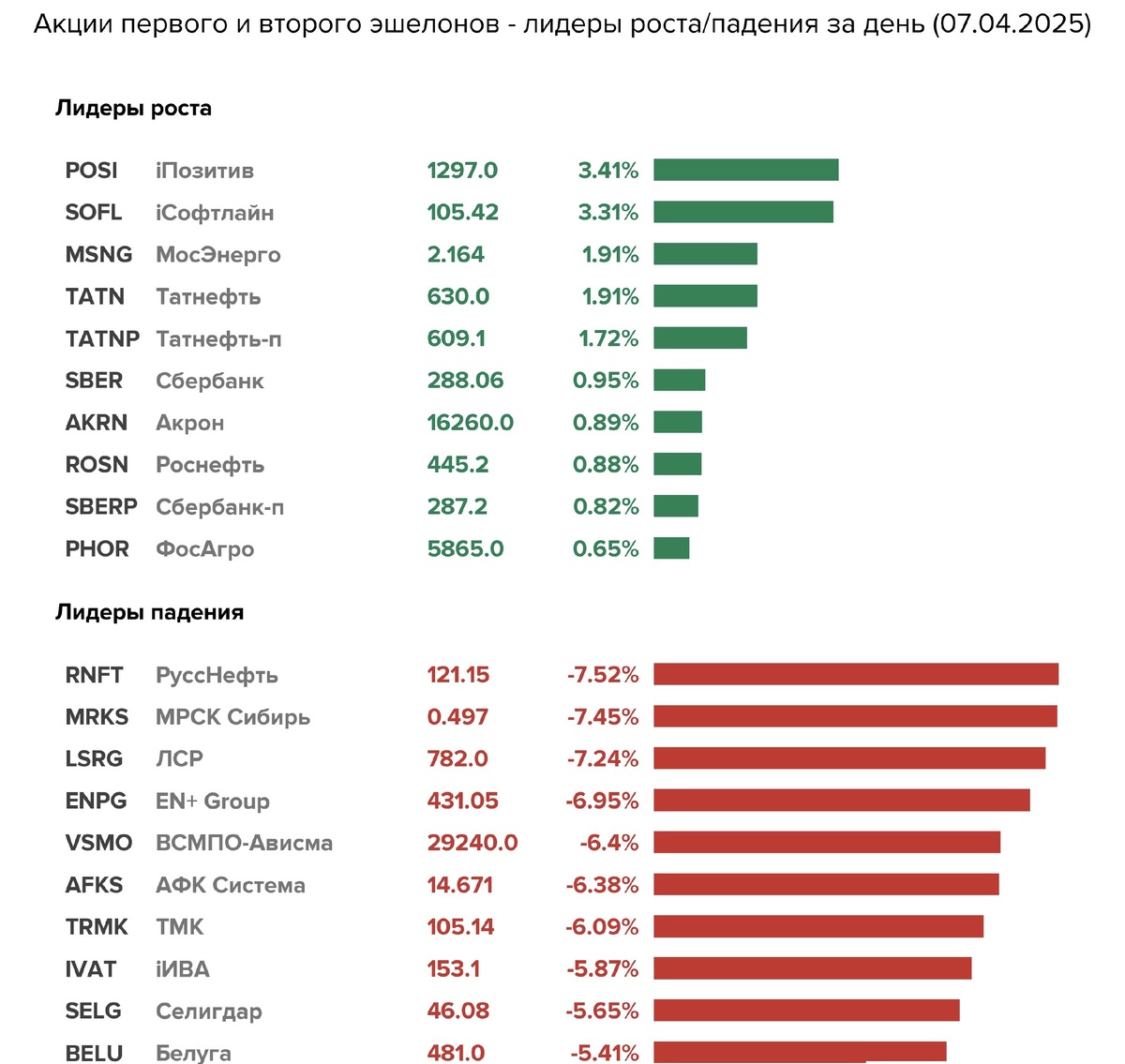 Всем привет! По итогам основной сессии 7 апреля индекс Московской биржи потерял около 1.9%. В моменте снижение превышало 4% - пик пришелся на открытие основной сессии. По характеру котировок видно было, что часть спекулянтов словили маржин-коллы. Оснвную просадку сразу выкупили, а дальше пошла "болтанка" в разные стороны: Как обычно нашлись компании, которые почти не упали и те, кто валился "семимильными шагами": На фоне падения нефти и укрепления доллара рубль все-таки начал сдавать позиции: При этом кроме рынка акций упал и облигационный рынок. Проведенный опрос на канале показал, что почти половина читателей, принявших участие в опросе, докупала сегодня акции: Утром дивиденды объявил КуйбышевАзот - 0,5%. Это даже не смешно. А еще банки продолжают снижать ставки. Писали про Сбер, который на 1% снижает ставку по вкладам. Также отметился Т-банк - с завтрашнего дня на 2 месяца будет не 21%, а 19%. Плюс вклада в том, что его можно пополнять в первые 30 дней. Кому актуально - можно успе