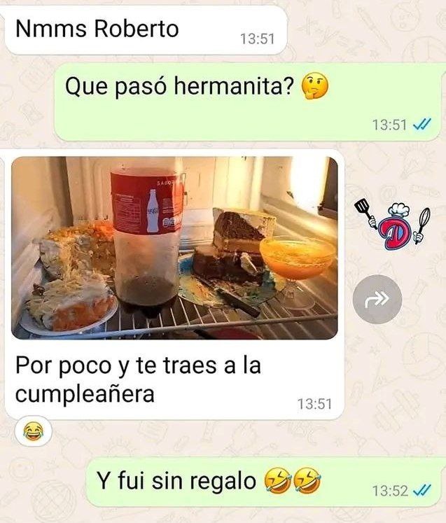 😲 ɴᴍᴍs (#LatAm) - было тут 🤪 ᴘᴏʀ ᴘᴏᴄᴏ - едва не/чуть не 😀 ᴇʟ/ʟᴀ ᴄᴜᴍᴘʟᴇᴀɴ̃ᴇʀ@ - именинник/ца 🌟 traducción: 🖤 Роберто, ты блин серьезно?!! 🤩 Что случилось, сестричка? 🖤 /фото/ 🖤 еще немного - и ты забрал бы с собой именинницу 🤩 и это при том, что я пришёл без подарка 🤣🤣🤣 #amistad #familia #hermanos #B1 #испанскийязык