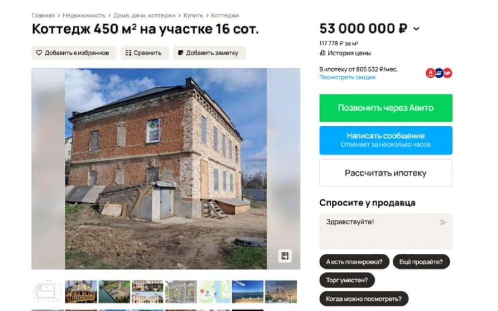 В Воронеже выставили на продажу старинный особняк ХIX века, расположенный в самом центре столицы Черноземья на Адмиралтейской площади. Согласно сайту бесплатных объявлений «Авито», продавец просит за него 53 млн рублей. По информации автора объявления, площадь объeкта культуpного наcледия рeгиoнальногo знaчeния «Дoм Уcпенcкoй церкви» составляет 450 кв. м. и находится в непосредственной близости от кopабля-музея Гoто Пpедеcтинация. Толщина стен особняка – один метр. Здание находится в собственности более семь лет. Работы по реставрации выполнены на 80% и за счет средств частных инвесторов. Особняк построили в 1888 году как жилой дом для служащих церкви, а подвал из старинного кирпича — конца ХVII века. После революции здание использовалось как многоквартирный частный дом. В Советские времена его перестроили и отдали под административные помещения. В процессе проведенной реставрации зданию вернули изначальную форму. Территория имеет центральный и два вспомогательных пешеходных входа, вор