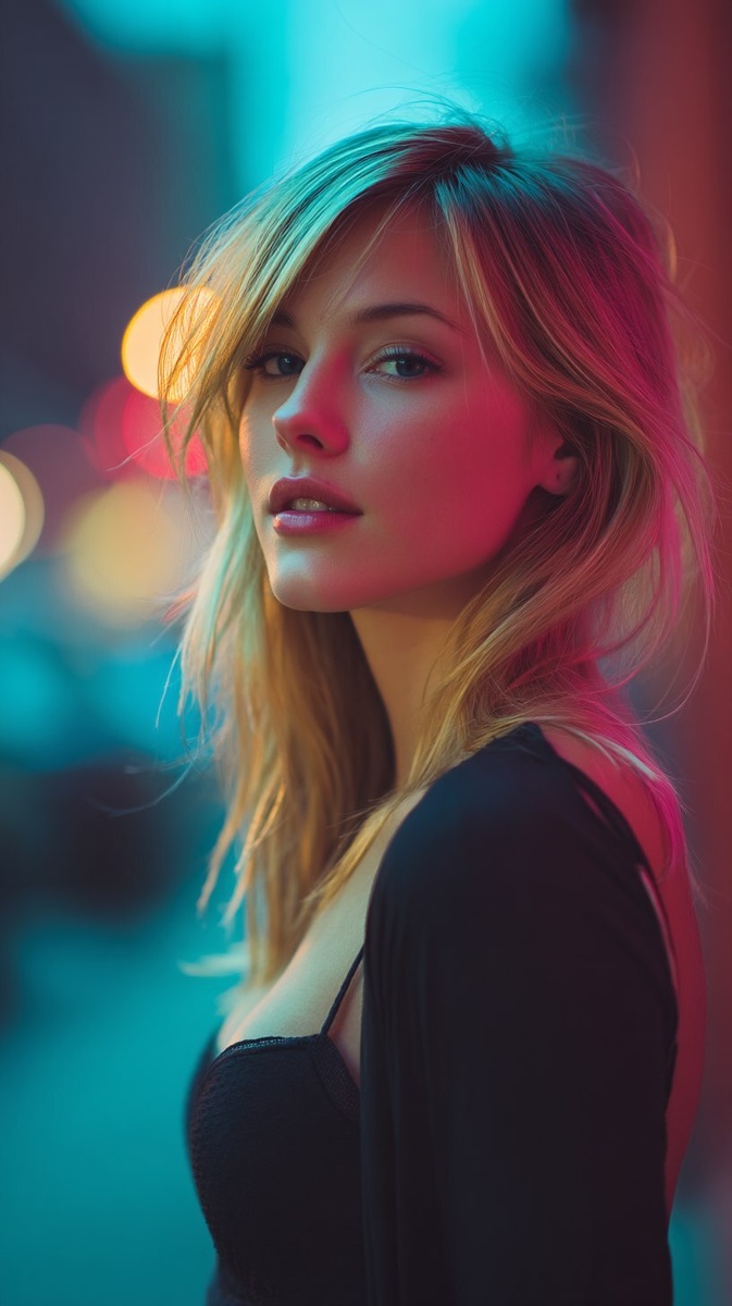 Создано на основе запроса: Depth of field photograph. Portrait. Disheveled. Blonde. Stunning. Dusk. City Street. Magenta and Cyan --- Автоперевод: Глубина полевой фотографии. Как тебе это изображение? 🤔 https://dzen.ru/id/65c0c65c86e4f837c27b24d7 #ИИ #AI #нейросеть #midjourney #art