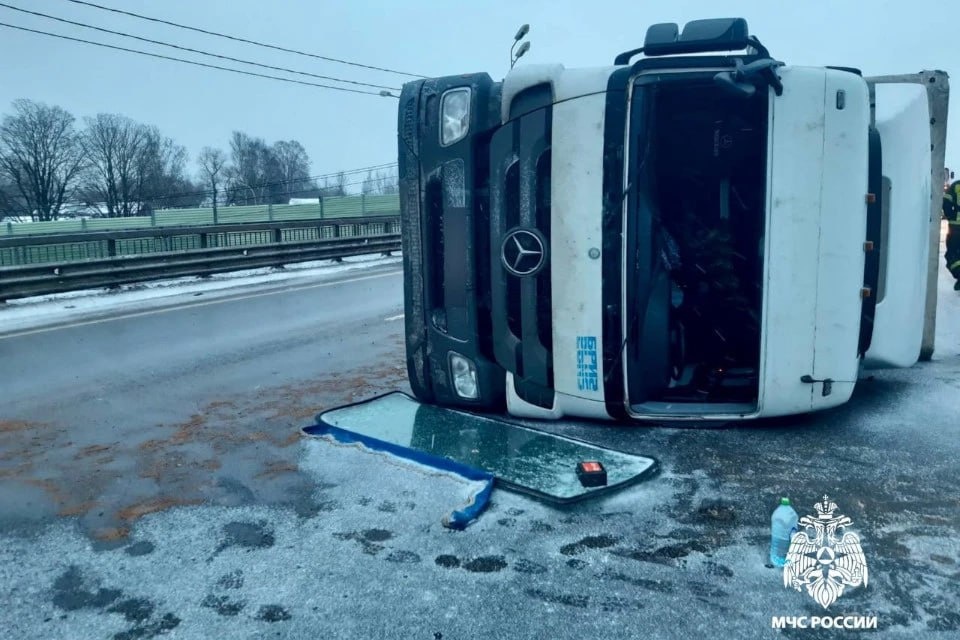 Грузовой «Мерседес» перевернулся на трассе М-10 «Россия» в Тверской области вечером 7 апреля. ДТП произошло при съезде на Старицкое шоссе. Как сообщили в региональном главке МЧС, водитель фуры не справился с управлением.