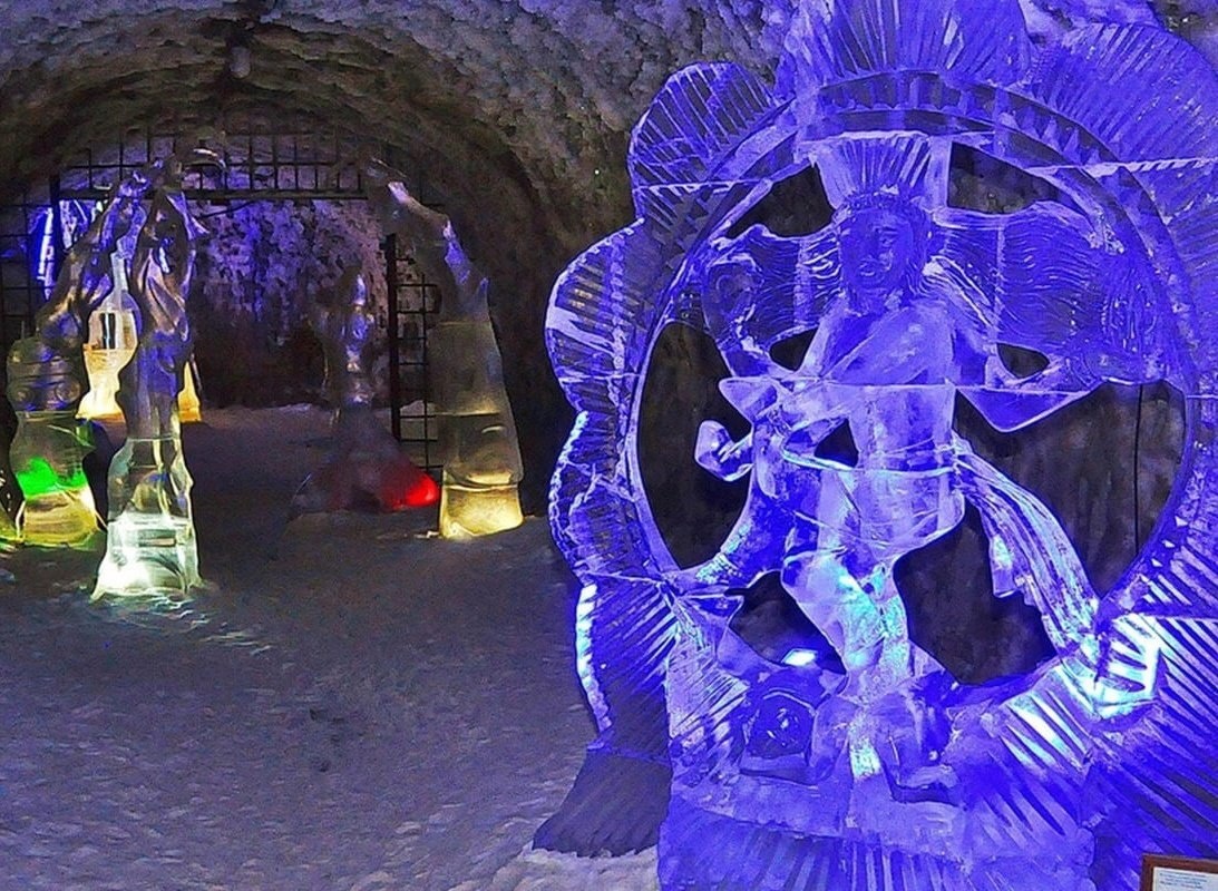 Царство вечной мерзлоты — это туристический комплекс, который представляет собой гигантский не тающий ледник в штольне у сопки Чочур-Муран, что примерно в 10 км от Якутска.