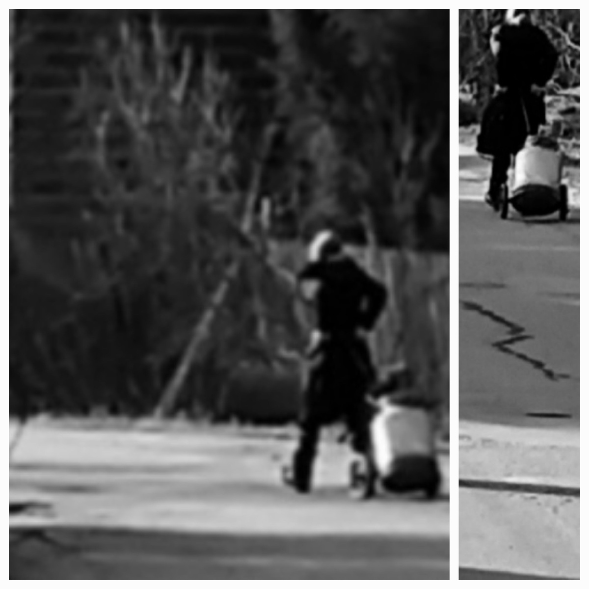 Увидела эту молодую женщину (на фото вверху) и сразу мысль:" Ей очень не легко!" Я так поняла, она зашла в калитку у дома и ее уже ждала фляга с телегой . С рюкзаком поехала по воду.