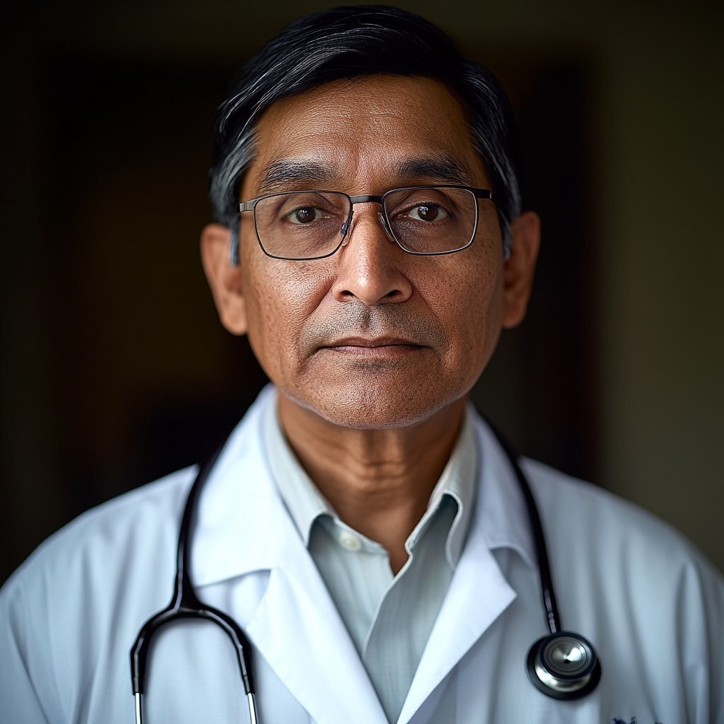 Создано на основе запроса: Realistic close-up portrait of Dr. Ravindra Munishwar Mehta, an Indian pulmonologist and critical care specialist in his mid-50s, wearing a white medical coat over professional attire, stethoscope around his neck, glasses, neatly combed hair, calm and confident expression, full face and shoulders visible, clean clinical background, straight posture, medical professional headshot style, shot on Canon EOS R5, 85mm lens, f/1.8 --- Автоперевод: Реалистичный портрет крупным планом доктора Равиндры Мунишвар Мехты, индийского пульмонолога и специалиста по индийской медицинской помощи в его середине 50-х годов, одетый в белое медицинское пальто над профессиональным нарядом, стетоскоп на шее, очки, аккуратно расчесал волосы, спокойное и уверенное выражение, полное лицо и плечи. Хорошо вышло? 🤔 https://dzen.ru/id/65c0c65c86e4f837c27b24d7 #ИИ #AI #нейросеть #midjourney #art