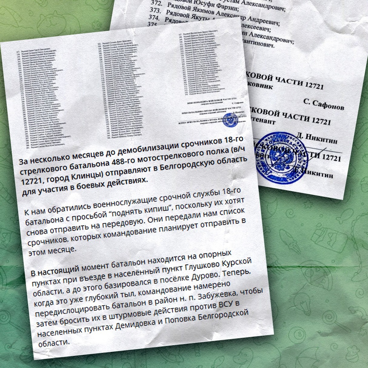 «Лучшие сорта лжи делаются из полуправды!»…вроде Геббельс так говорил… Специалисты из ГУР это отлично знают и используют. Взяли часть реального документа с печатью, не опубликовав титул и сочинили свою историю. Цель - максимально напугать призывников и их родственников, усложнить призывную кампанию и т.д. В реальности этот приказ издан исключительно для начисления денежного довольствия военнослужащим из указанного списка в соответствии с указаниями Верховного на «Прямой линии». Ни одного слова про Белгородскую область, а тем более про «штурмы» там нет. Даже не сомневайтесь! А вот как выписка оказалась у хохлов тщ майоры думаю следует разобраться. @iperiodu| @iperiodu_ru x @iperiodu_ua| Подписывайтесь