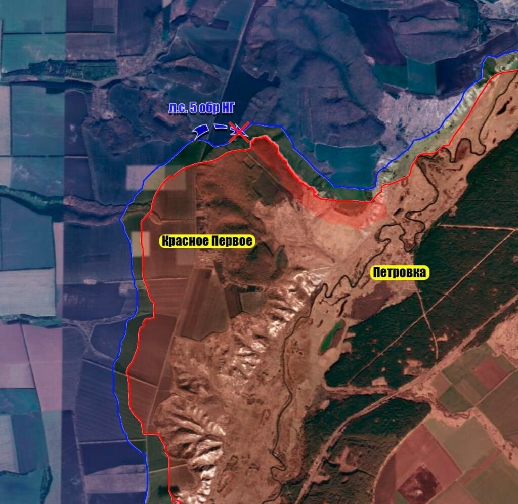 ВС РФ, контролируя господствующие высоты, продвинулись до 700 метров севернее н.п. Красное Первое, сообщает (https://t.me/ukrainian_guide/11157) "Направленец по Украине":