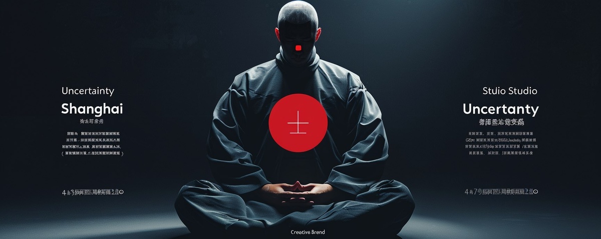 Создано на основе запроса: Black background with "Uncertainty", "Uncertainty Studio", "Shanghai Uncertainty Creative Studio" written in white letters in the middle. The word "Brand" is written in large letters above and below. Between the words there is a silhouette of a 30-year-old man sitting in the air with a red dot between his eyebrows, symbolizing mindfulness. On the right is the grayscale color used for the logo design, brand kit and visual identity. Logo designed by Uncertainty Studio. q2 4D rendering. Very high resolution.