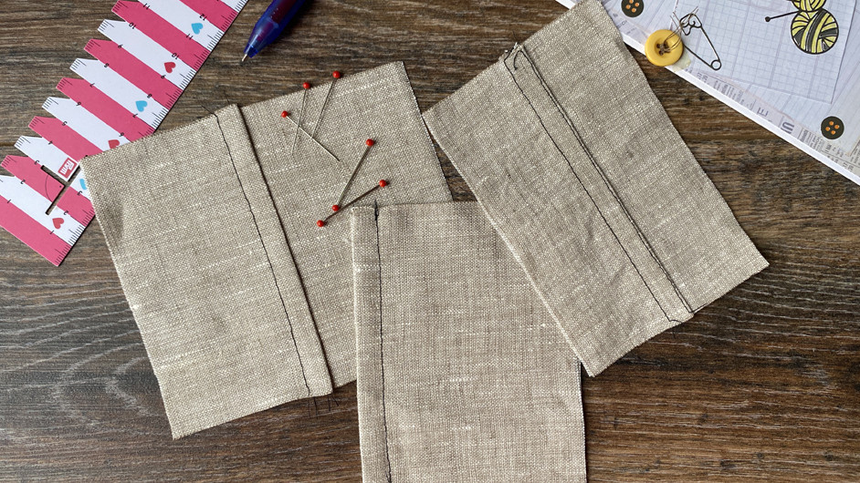На небольших образцах льняной ткани я покажу технологию выполнения каждого из трёх видов бельевого шва. Для наглядности я использовала контрастные нитки, увеличенные припуски и растояния между строчками, чем указаны ниже в описании.