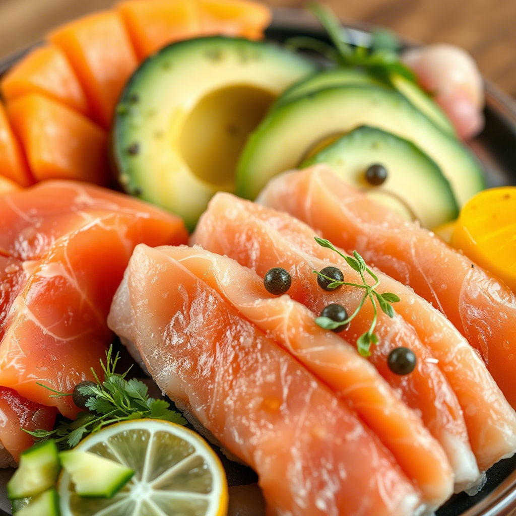 Совет шефа:Подавайте блюдо сразу, чтобы авокадо не потемнел. Для текстуры добавьте хрустящие чипсы из водорослей.