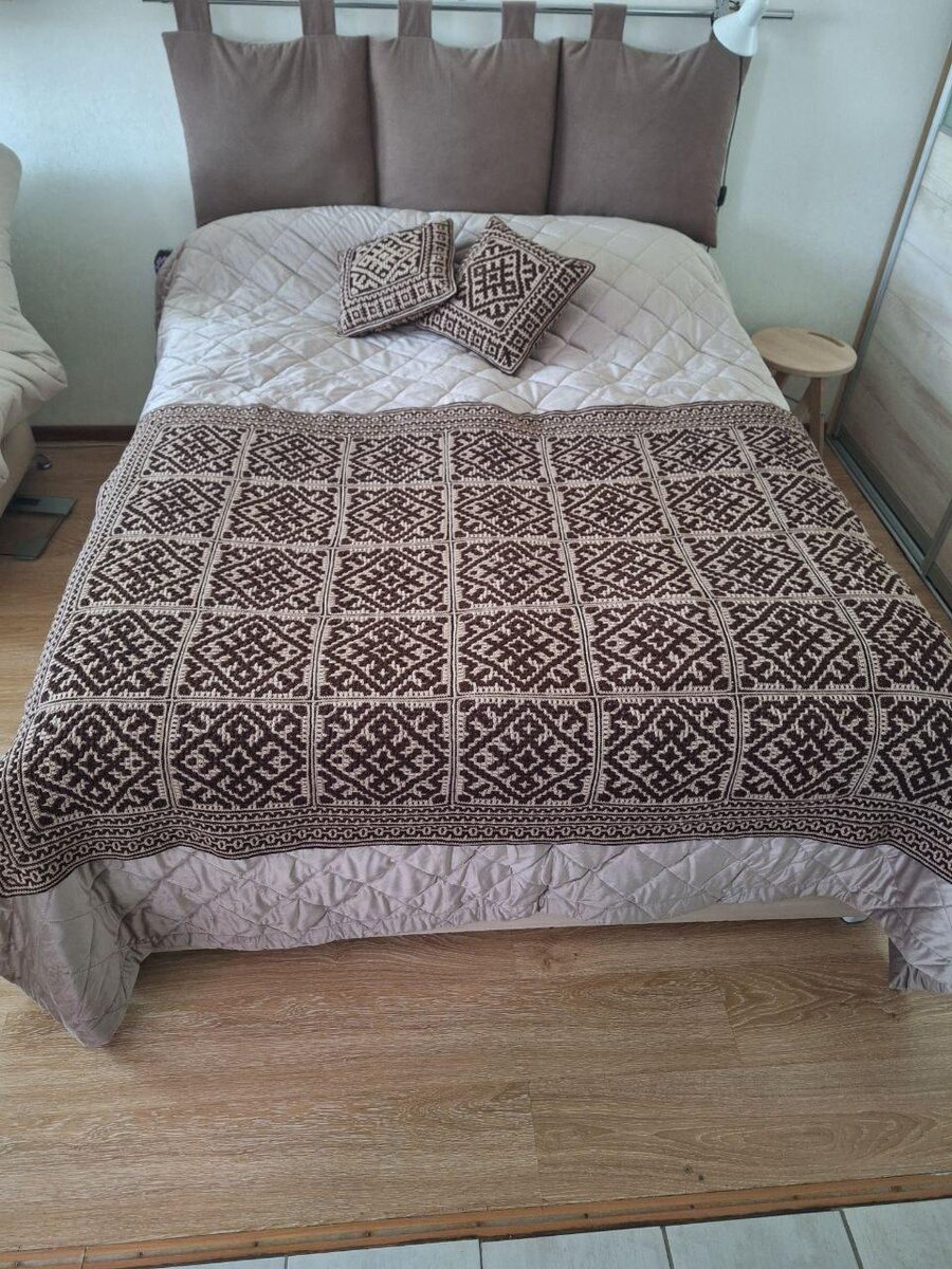 «Подушки связала очень быстро, плед немного дольше». Новости наших чатов Интерьерная коллекция от участницы чата «Квадрат в день» @Tashechka2209🔥 «Закончила плед и подушки проект ,,Квадрат в день,, Подушки связала очень быстро, плед немного дольше . Размер 1400×1800, 35 квадратов ,нитки Alize lanacold и Alize sekerim . Выражаю огромную благодарность Юлие , за книги ,за обратную связь, Спасибо за доброту и отзывчивость, очень вдохновилась новыми идеями». Квадрат в день: чат и схемы https://t.me/kvadratgendina