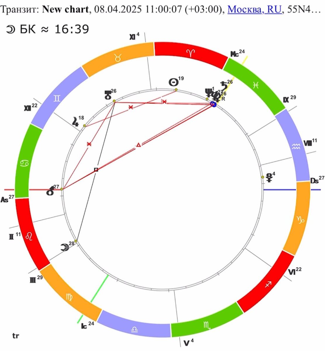 По прежнему имеем много аспектов от более медленных и влиятельных планет: