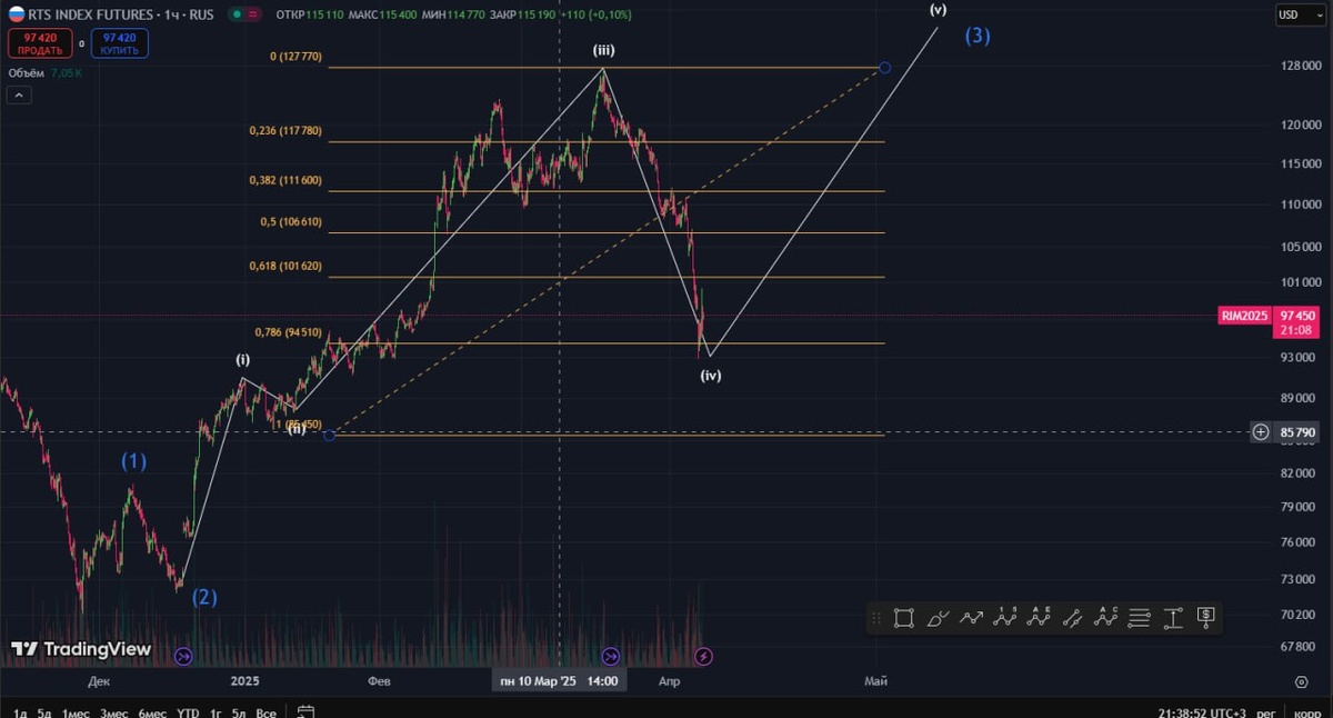Оптимистично смотрю на инструмент. Если разметка верна, то коррекция уже завершена. Сегодня открыл позицию на фьючерсе и набрал дивидендные акции