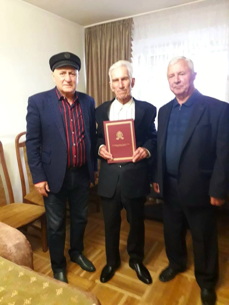По поручению главы Адыгейска Хачмамука Азамата Шамсудиновича председатель Совета ветеранов Хуаде Адам и председатель Совета старейшин Гонежук Мугдин поздравили с 90-летием со дня рождения Панеша Асланбия Яхьевича.