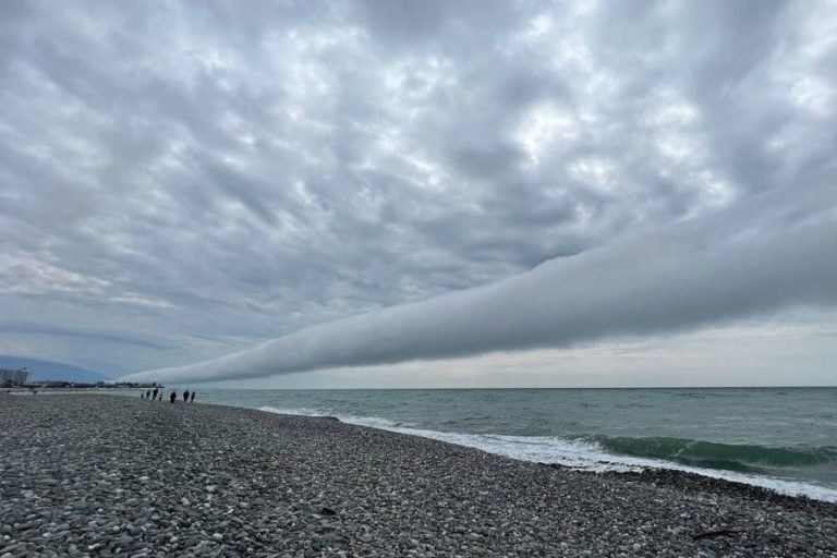 6 апреля, около 12 часов дня, у побережья Сочи было зафиксировано редкое метеорологическое явление – Утренняя Глория, также известная как плоский смерч. Это облако-рулон, которое наблюдали в районе Сириуса, привлекло внимание местных жителей и метеорологов.