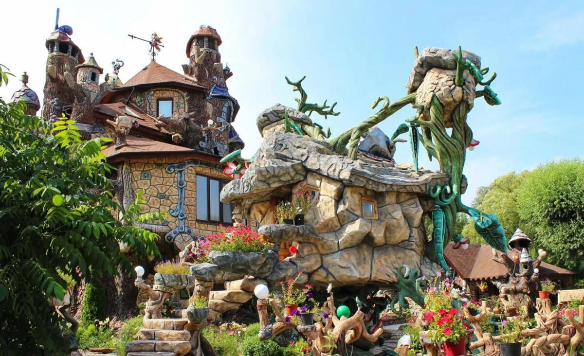Сказочное подворье Вихляндия — это фэнтезийный парк скульптур под открытым небом. Здесь и детям и взрослым любопытно будет забраться в Дом на стебле, созданный по мотивам сказки «Джек и бобовое зернышко», и подняться к Дому пирата.