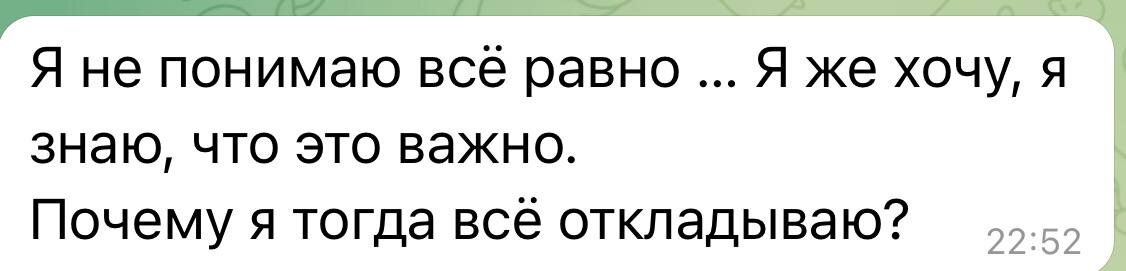 Что такое ПИТ — и почему его легко перепутать с прокрастинацией ❗️Прокрастинация — это когда ты откладываешь, потому что не хочешь, скучно, лень, ну «не сейчас». ❗️А ПИТ — это когда ты хочешь, но не можешь. ⠀ ➡️ Ты открываешь документ — и застываешь. ➡️Ты знаешь, что надо закончить статью, — и идёшь мыть ванну. ⠀ Разница в том, что прокрастинация — поведение, а ПИТ — защита. Психика защищается от чувства: стыда, страха, перегруза, бессилия. ⠀ 📍 И пока ты не поймёшь, чего именно боится твоя нервная система — никакие «соберись» не работают. ⠀ Если тебе нужно понять, что с тобой — и перестать ругать себя, приходи. #ПИТ_докторСДВГ