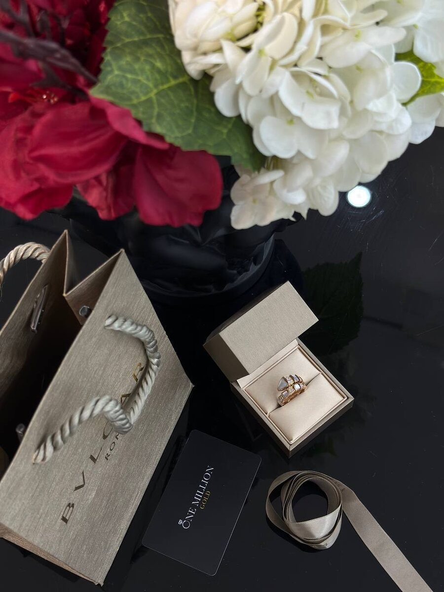 Кольцо BVLGARI SERPENTI VIPER 🐍 •Розовое золото 750 пробы ✨ •Бриллианты общей массой 0,82 карата 💎 •Белый перламутр 🤍 Воплощая дух вечного обновления, кольцо излучает элегантность и силу. Украшено бриллиантовым паве, символизируя непрерывное обновление и трансформацию. Дизайн, вдохновленный образом змеи, отражает ее мистическую природу и способность к метаморфозам. Это украшение станет не только изысканным дополнением к вашему образу, но и напоминанием о красоте перемен и внутренней силы 😍 💎 ONEMILLIONGOLD.RU 💎