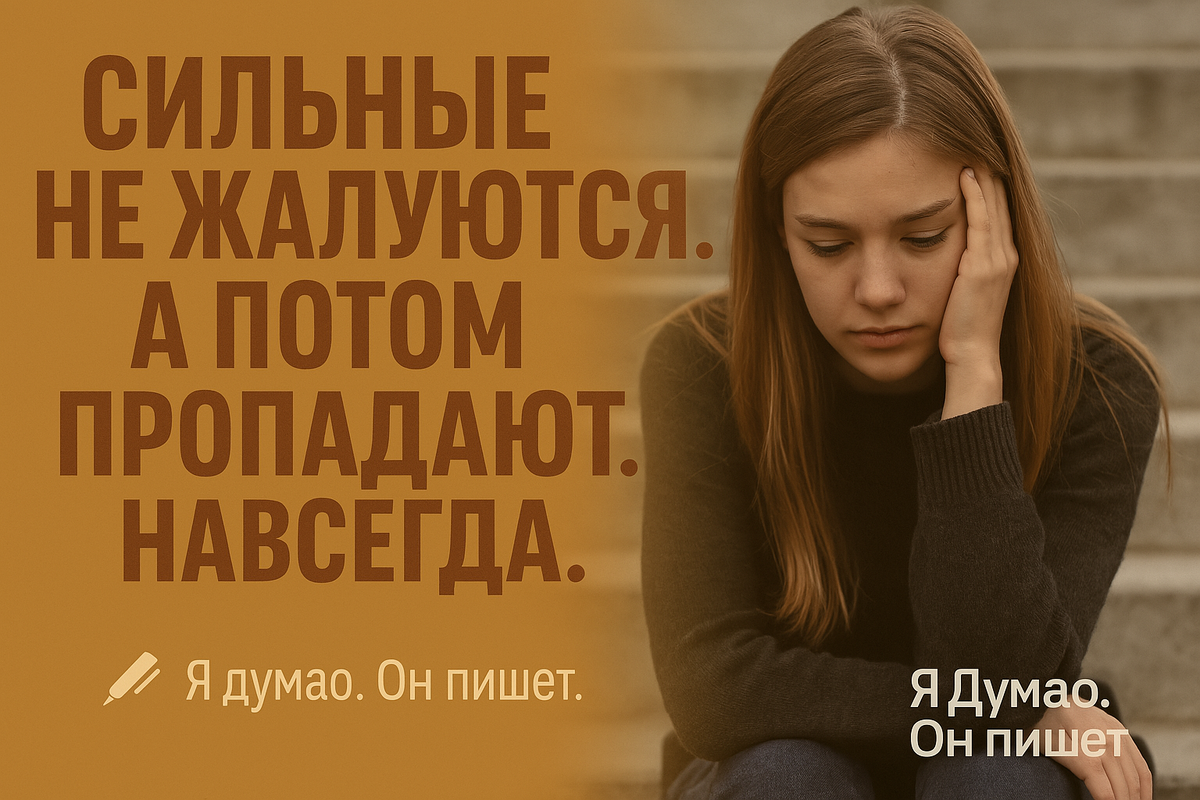 Мы привыкли, что сильный справится. Что он не жалуется. Не просит. Не плачется. Он же “держит себя в руках”. Он говорит: “Всё нормально.” Он шутит, когда внутри всё рушится. А потом — тишина. Ты вдруг замечаешь, что его давно не видно. Он пропал. Как будто растворился. И ты думаешь: «А ведь он никогда не говорил, что ему плохо...» Они помогают другим. Слушают, поддерживают, тащат на себе. Им пишут: “Ты у нас такой надёжный.” Им не звонят, когда тяжело — “ну он же справится”. Но никто не видит, как они молча глотают слёзы. Как устают. Как обижаются, что никто не спрашивает: “А как ты сам?” Это может значить: — он не хочет грузить — он боится показаться слабым — он уже устал просить И чем он тише — тем больше в нём крика. Только этот крик — внутри. И его не слышно. Сначала они просто устают. Потом отдаляются. Потом исчезают из всех чатов. А потом — остаются только в воспоминаниях. Позвони. Напиши. Спроси: “Как ты? По-настоящему.” Один вопрос может спасти. Одна фраза может вернуть. Одна