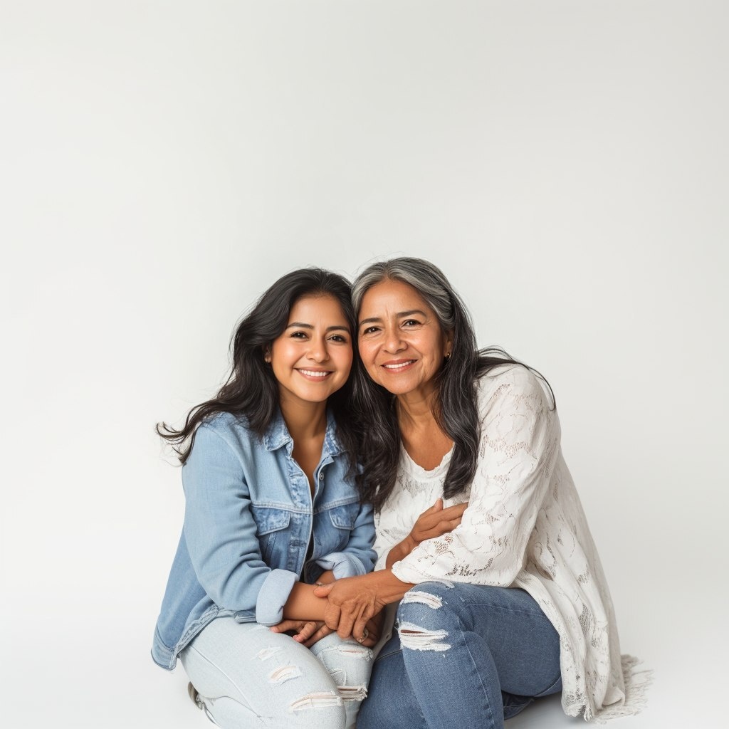 Создано на основе запроса: fotografia de madre e hija latinas abrazadas y sonriendo