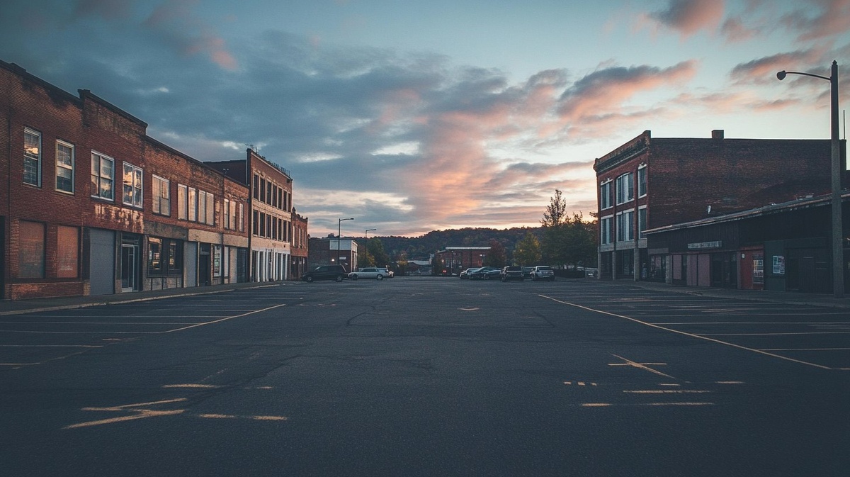 Создано на основе запроса: a parking lot with old brick buildings off in the distance. it's a small town and the setting is as dusk. --- Автоперевод: парковка со старым кирпичным зданиями на расстоянии. Как тебе этот вариант? 🤔 https://dzen.ru/id/65c0c65c86e4f837c27b24d7 #ИИ #AI #нейросеть #midjourney #art