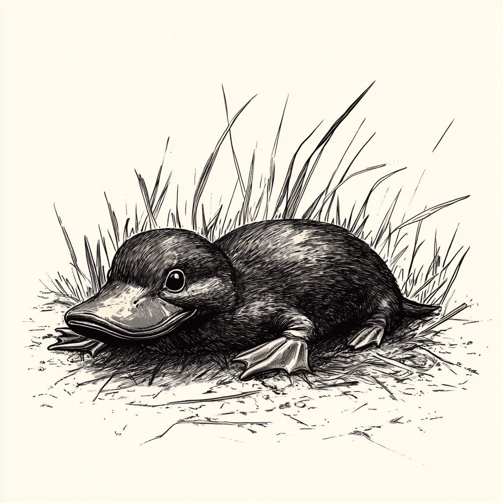 Создано на основе запроса: Create a black and white illustration in the style of 1930s naturalist books, featuring a fun skinny baby platypus lying down on grass --- Автоперевод: Создайте черно -белую иллюстрацию в стиле книг натуралиста 1930 -х годов, в которых изображена веселая тощая детская платок, лежащий на траве Неплохо вышло? 🤔 https://dzen.ru/id/65c0c65c86e4f837c27b24d7 #ИИ #AI #нейросеть #midjourney #art