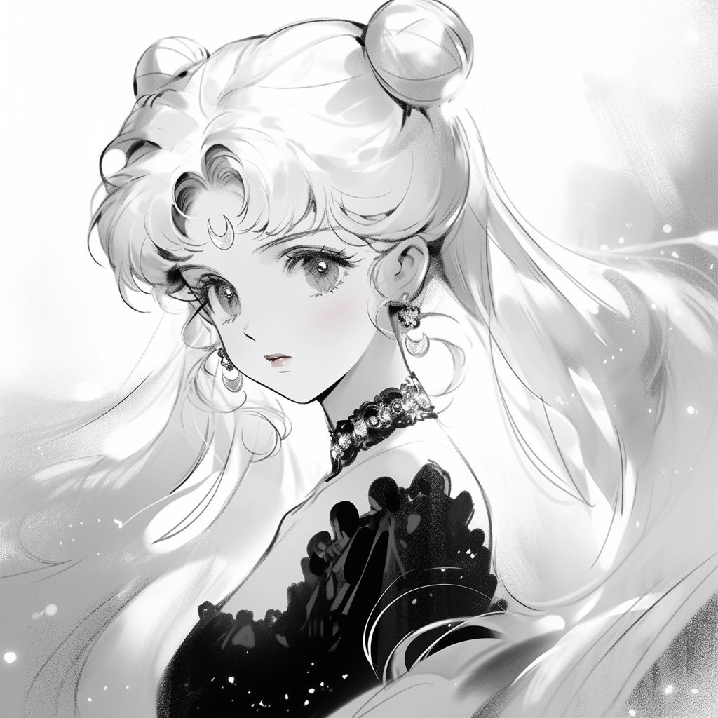 Создано на основе запроса: sailor moon but in monochrome black and white