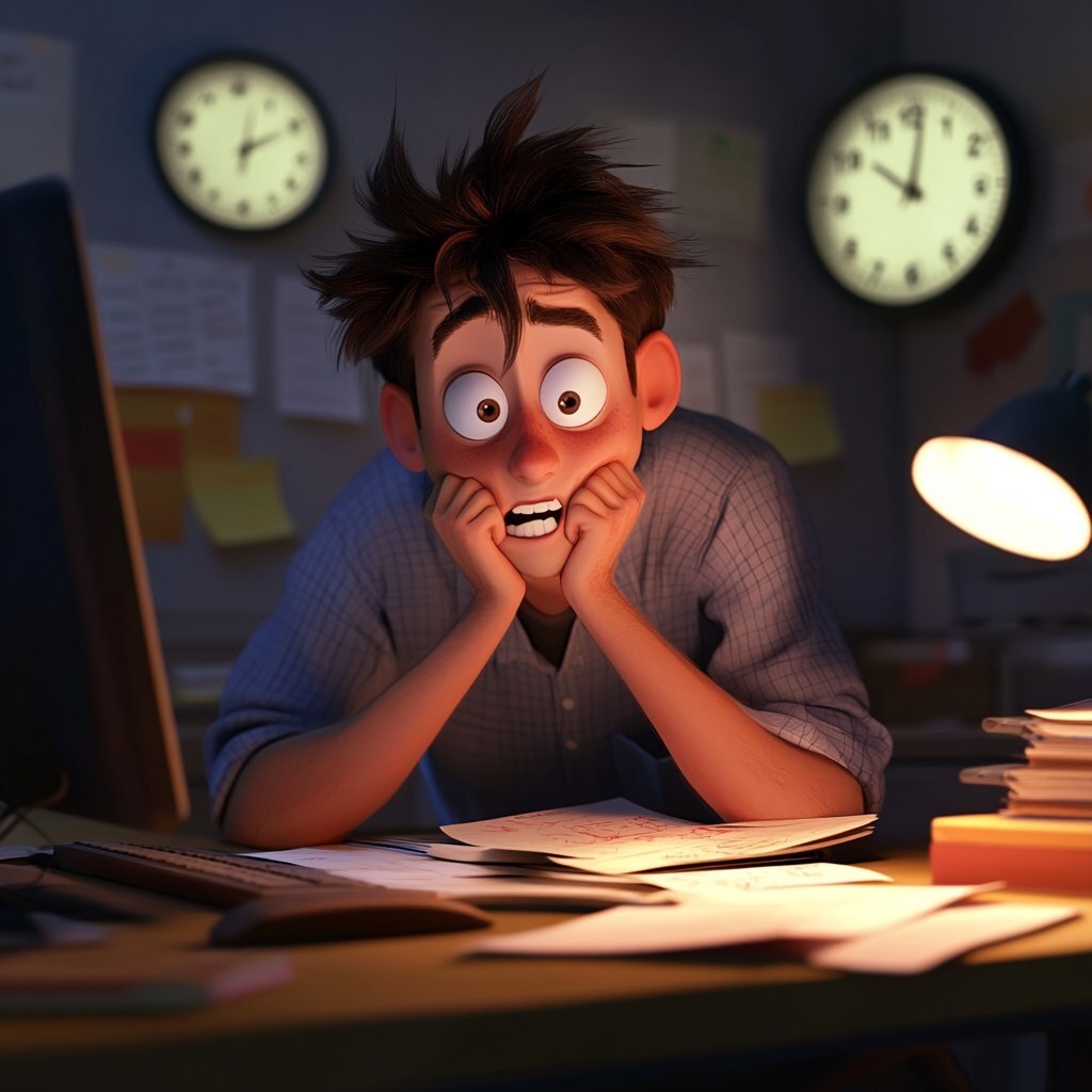 Создано на основе запроса: a stressed student at a desk in a classroom, typing frantically on a computer, biting pencil, papers and notebooks scattered, clock ticking loudly, wide eyes, late-night study vibe, Pixar-style animation with emotional expressions and soft lighting --- Автоперевод: Стресс-ученик за столом в классе, отчаянно набирая на компьютер, кусая карандаш, бумаги и тетради, разбросанные, громко тикают часы, широкие глаза, ночная атмосфера, анимация в стиле пиксара с эмоциональными выражениями и мягкое освещение Интересно выглядит? 🤔 https://dzen.ru/id/65c0c65c86e4f837c27b24d7 #ИИ #AI #нейросеть #midjourney #art