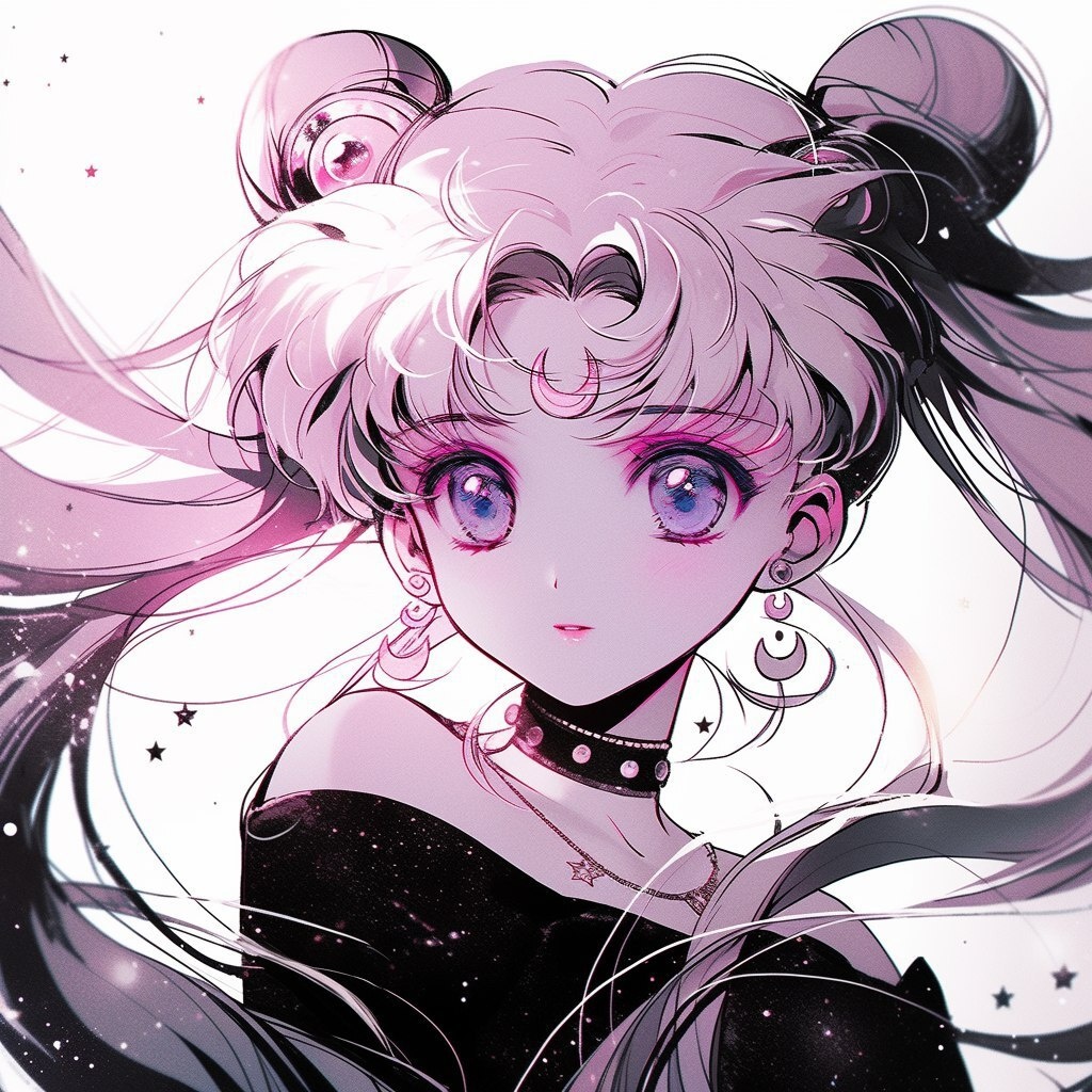 Создано на основе запроса: sailor moon but in character in colors monochrome and background with stars and black